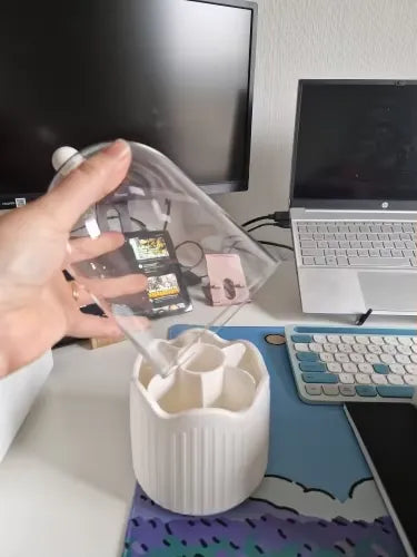 "OMG this makeup holder is a lifesaver! Fits all my brushes and lipsticks neatly. Love the 360° rotation, makes getting ready so much easier. Plus, it's super cute on my vanity! Who knew organizing could be this chic? Highly recommend for keeping your counter clutter-free.💄💅😊"